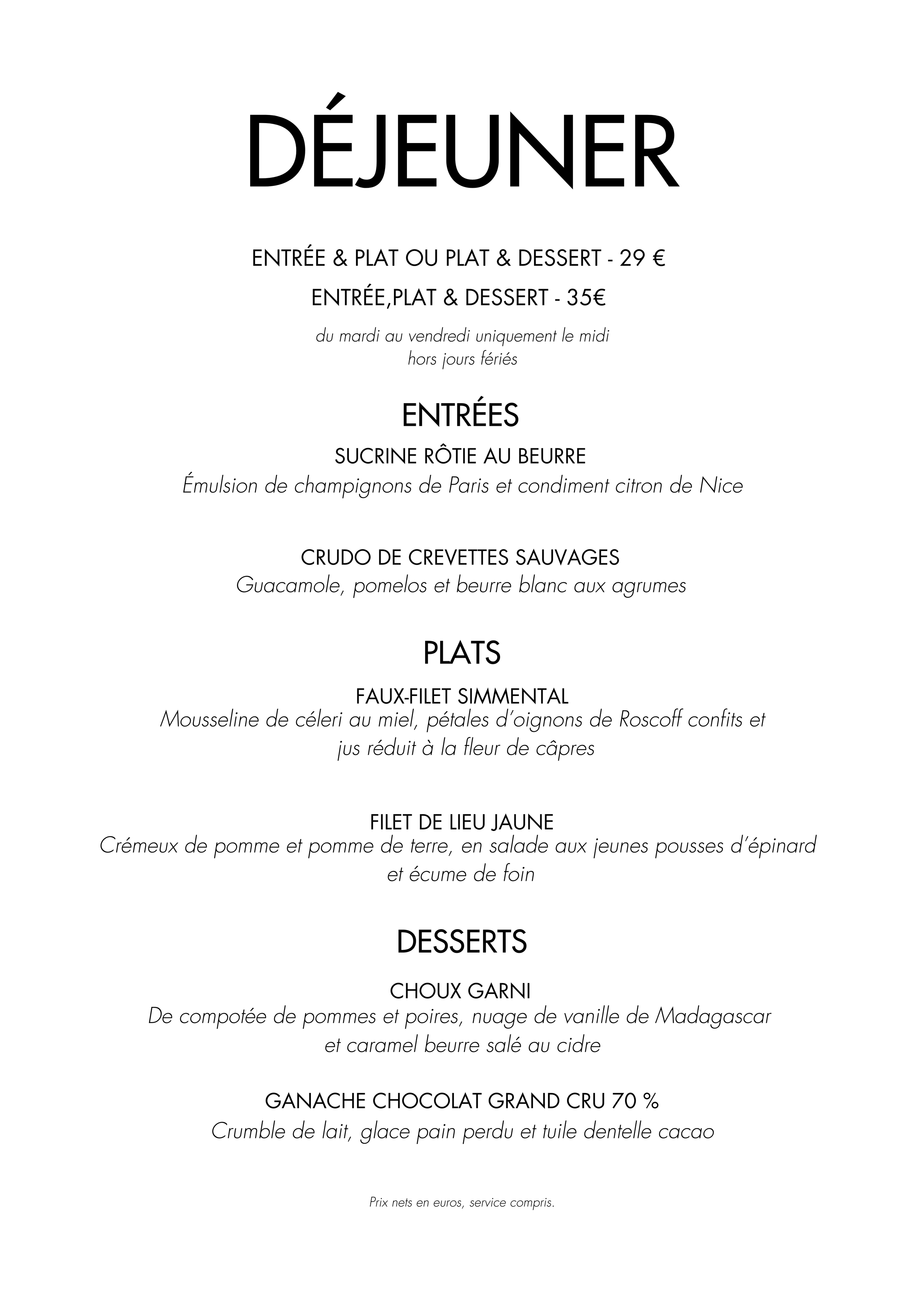 Les plats & boissons de la carte sont sujets à comporter des produits allergènes, liste disponible sur demande.
